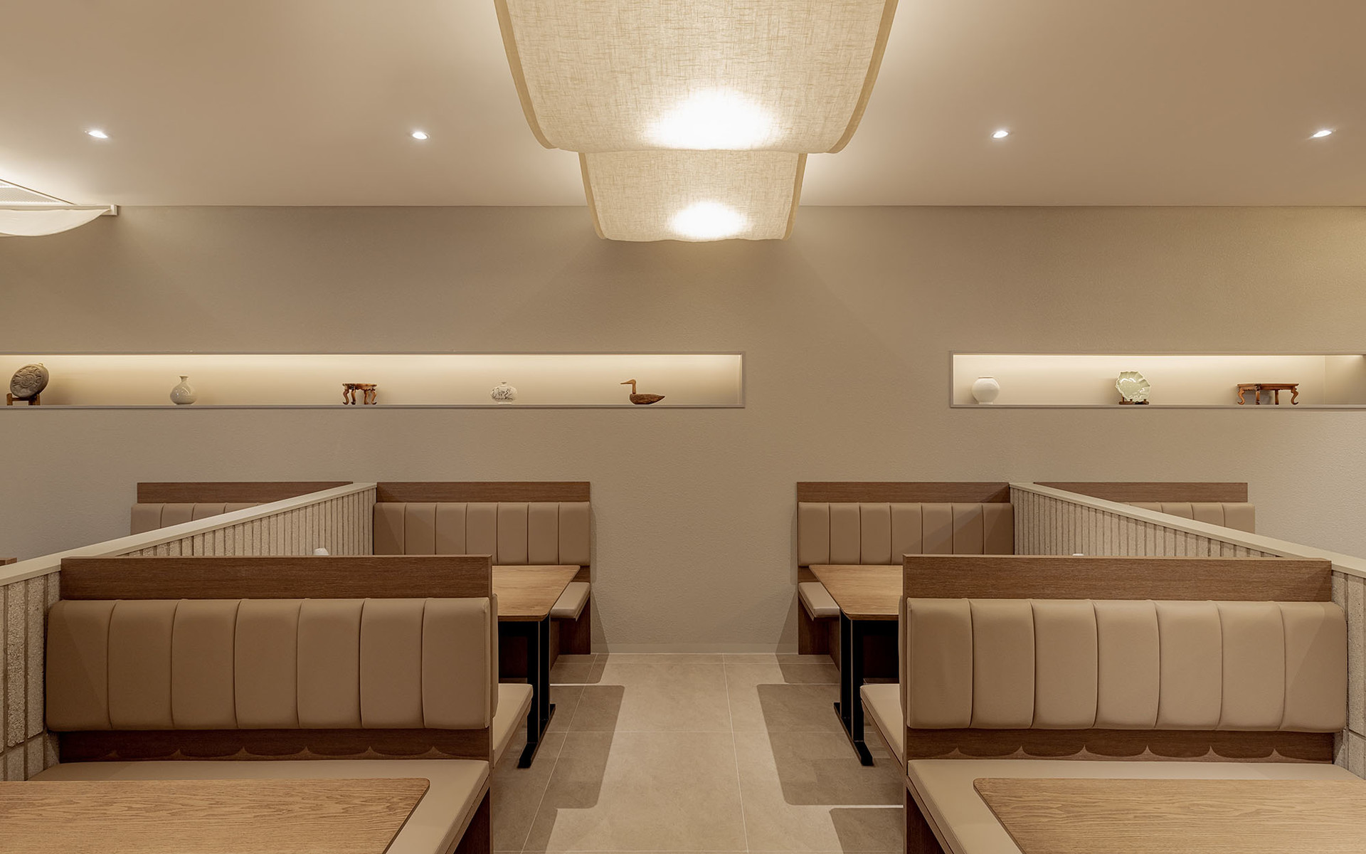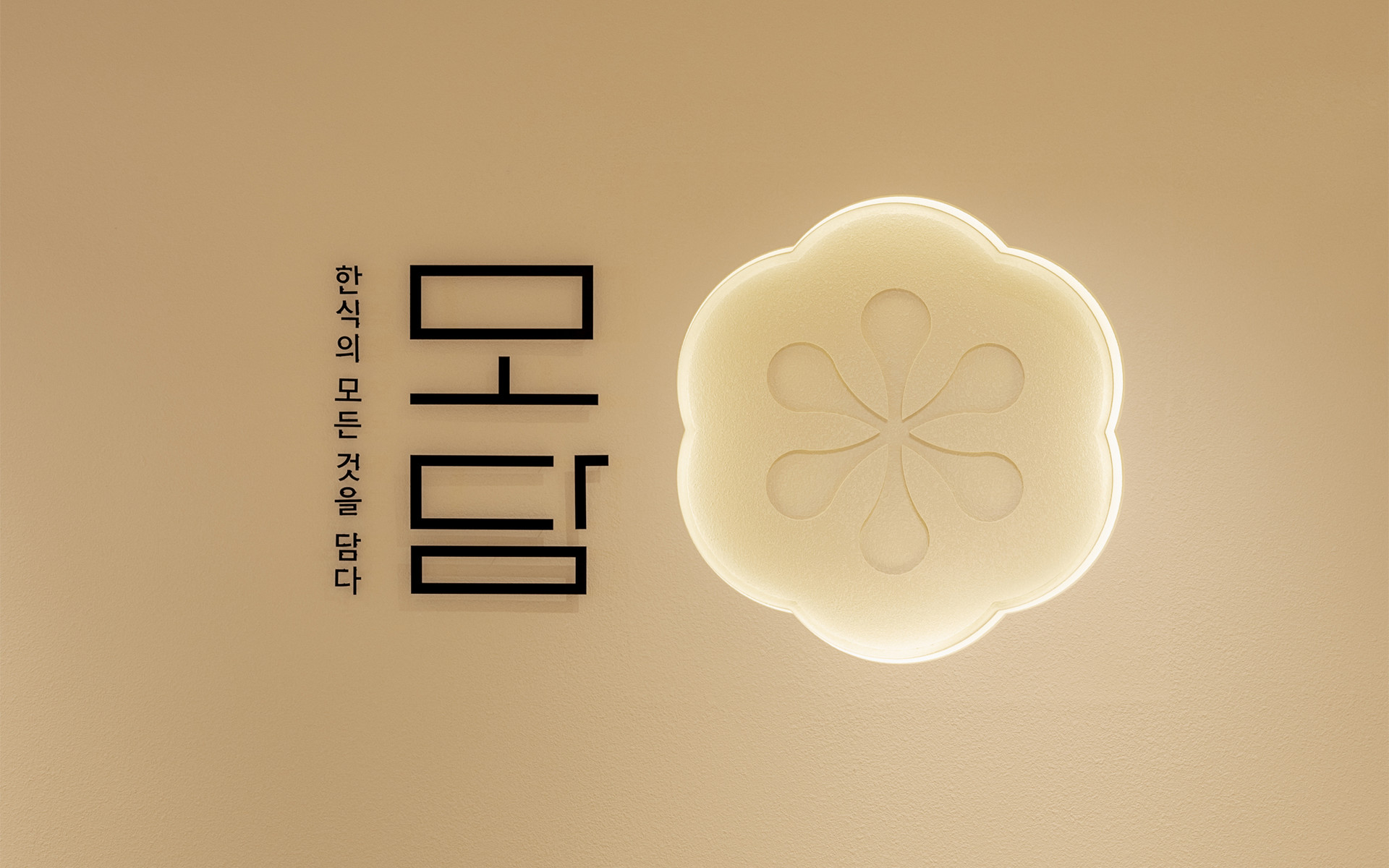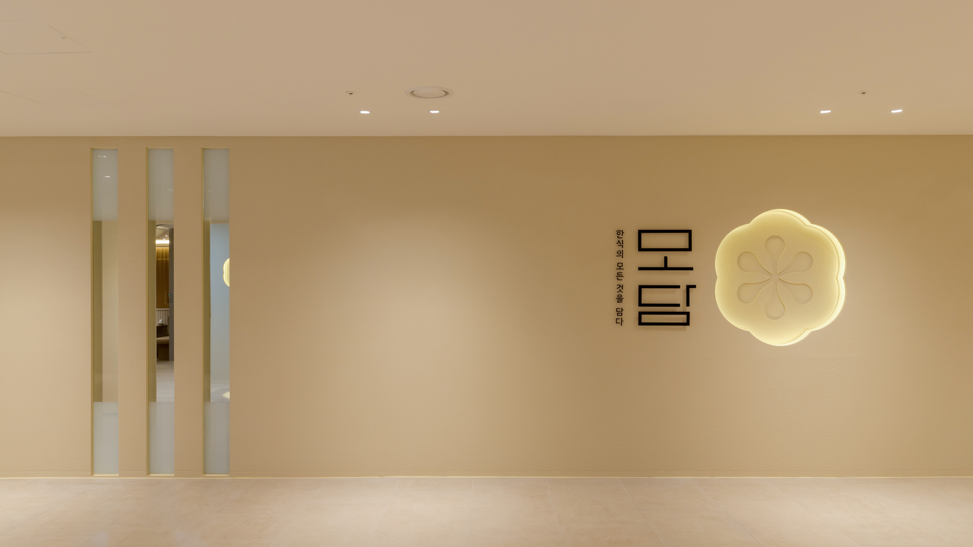 한식의 모든 것을 담은 브랜드, 모담입니다. 브랜딩부터 공간까지 엔도에서 진행한 작업으로 한식의 모든 것을 담는 소반상과 단청을 컨셉으로 진행되었습니다. 곡선의 요소와 긴 타일을 사용하여 단청과 서까래 형태를 부여해 한국적이지만 전체적인 모던함으로 도심과 잘 어우러지게 설계된 공간입니다.