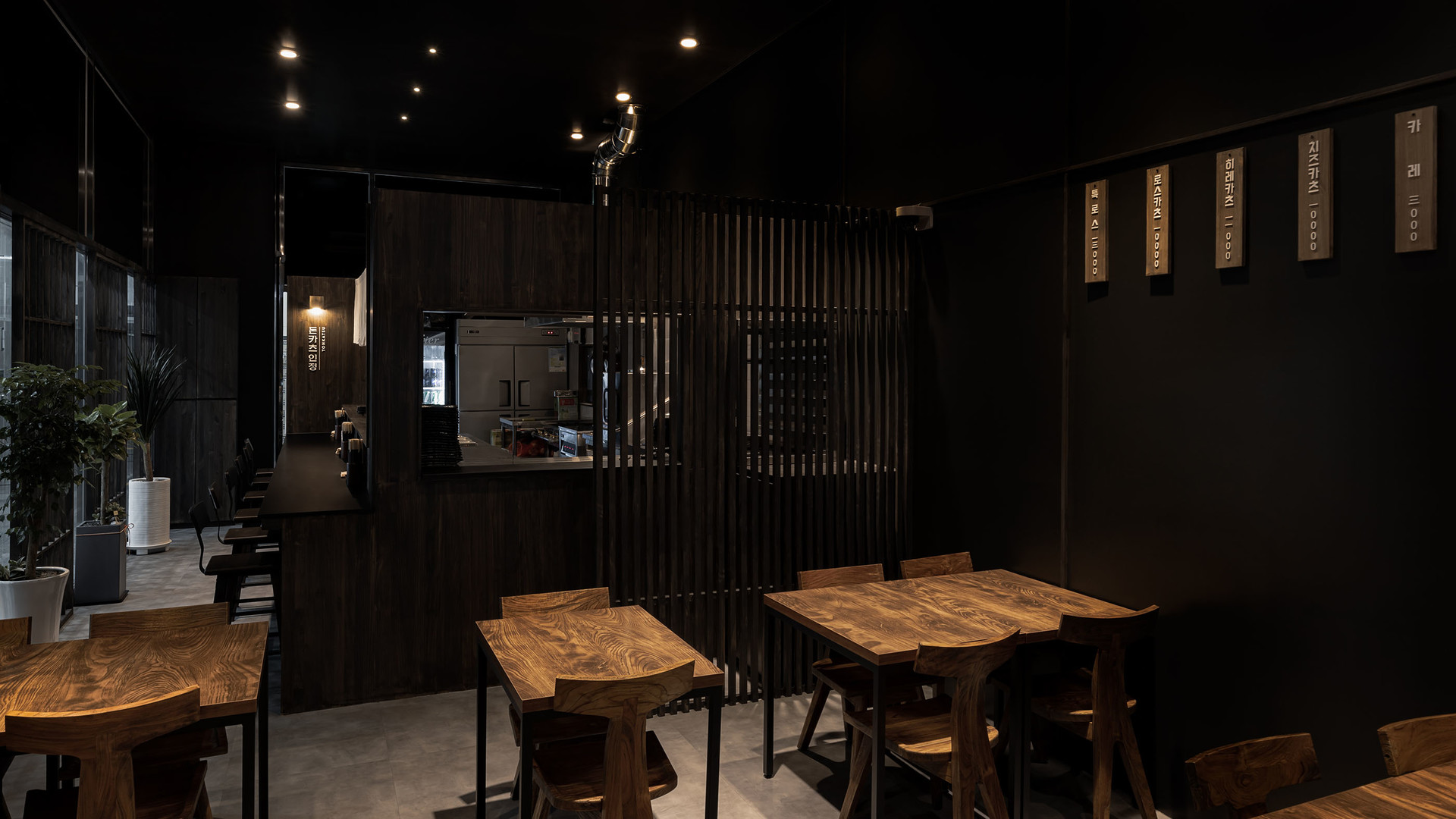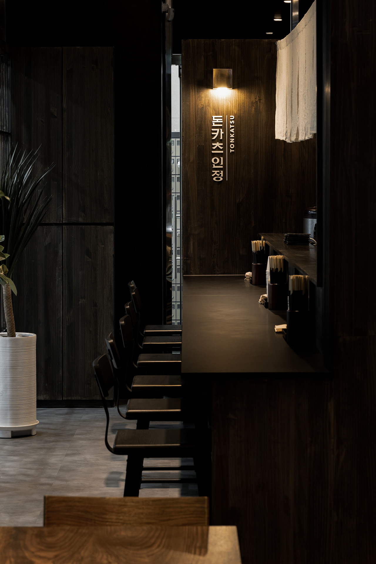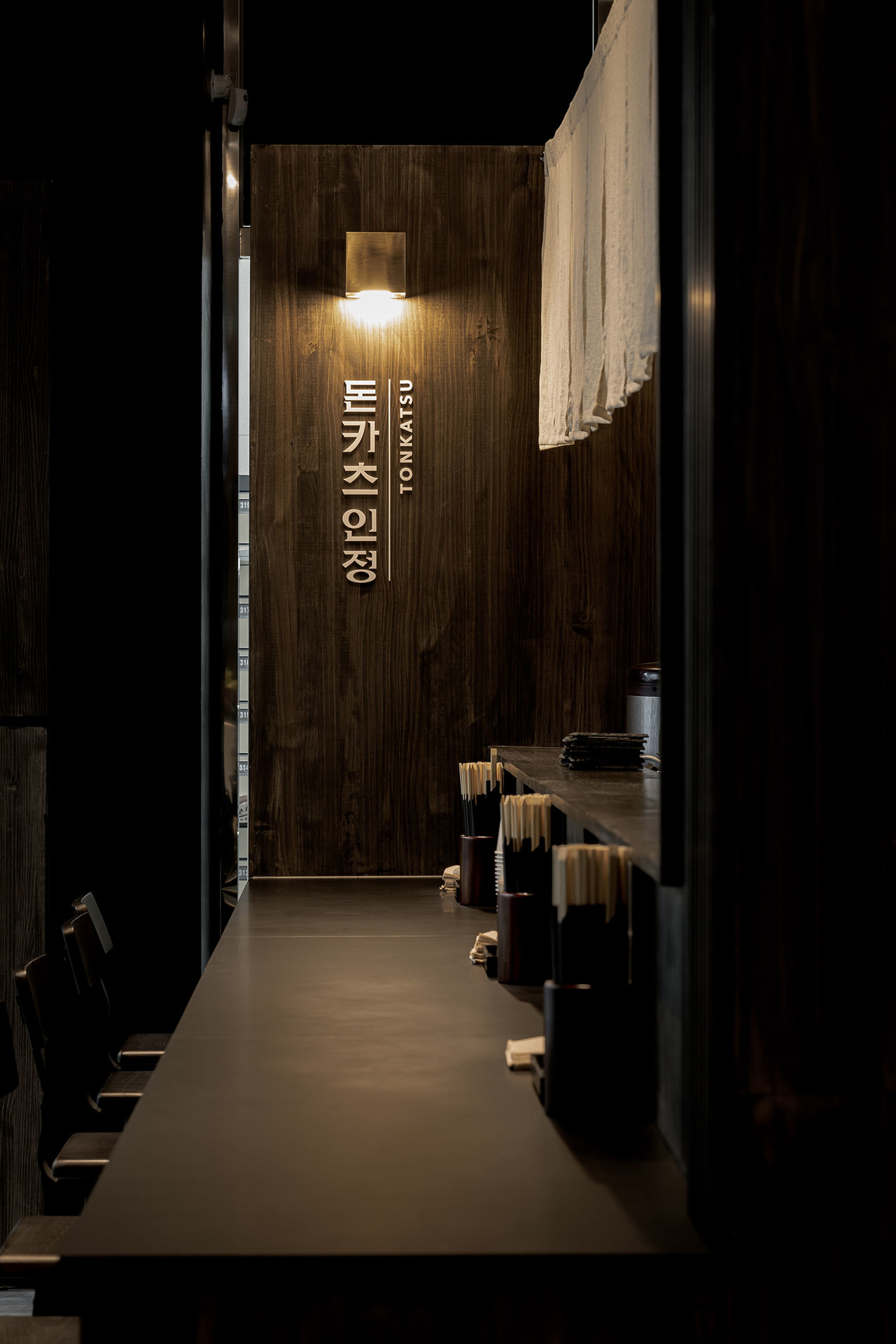 절제된 조명과 짙은 우드톤으로 따뜻하고 정갈한 분위기를 담은 돈카츠 전문점 ‘인정’입니다.