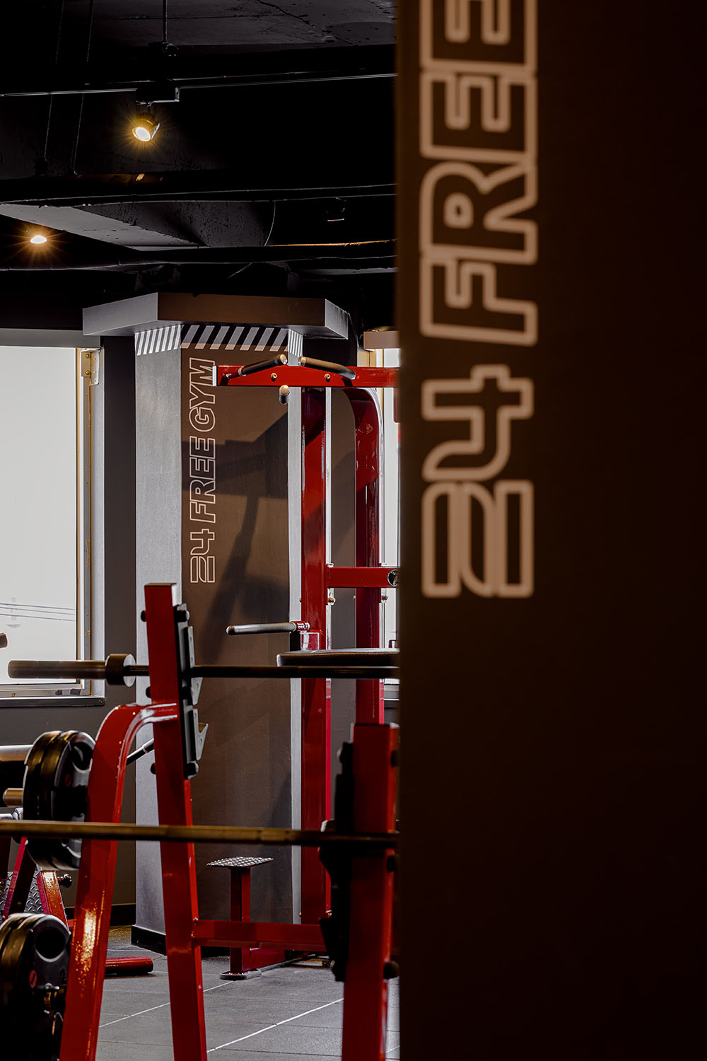 24시간 열려 있고 무인 시스템을 적용한 프리짐24입니다. 운영 방식을 드러내고 있는 상호의 이미지를 극대화하기 위해 브랜딩 디자인에 많은 포인트를 주어 응용·설치하고, 공간 디자인이 이를 뒷받침해주는 방식으로 설계된 프로젝트입니다.