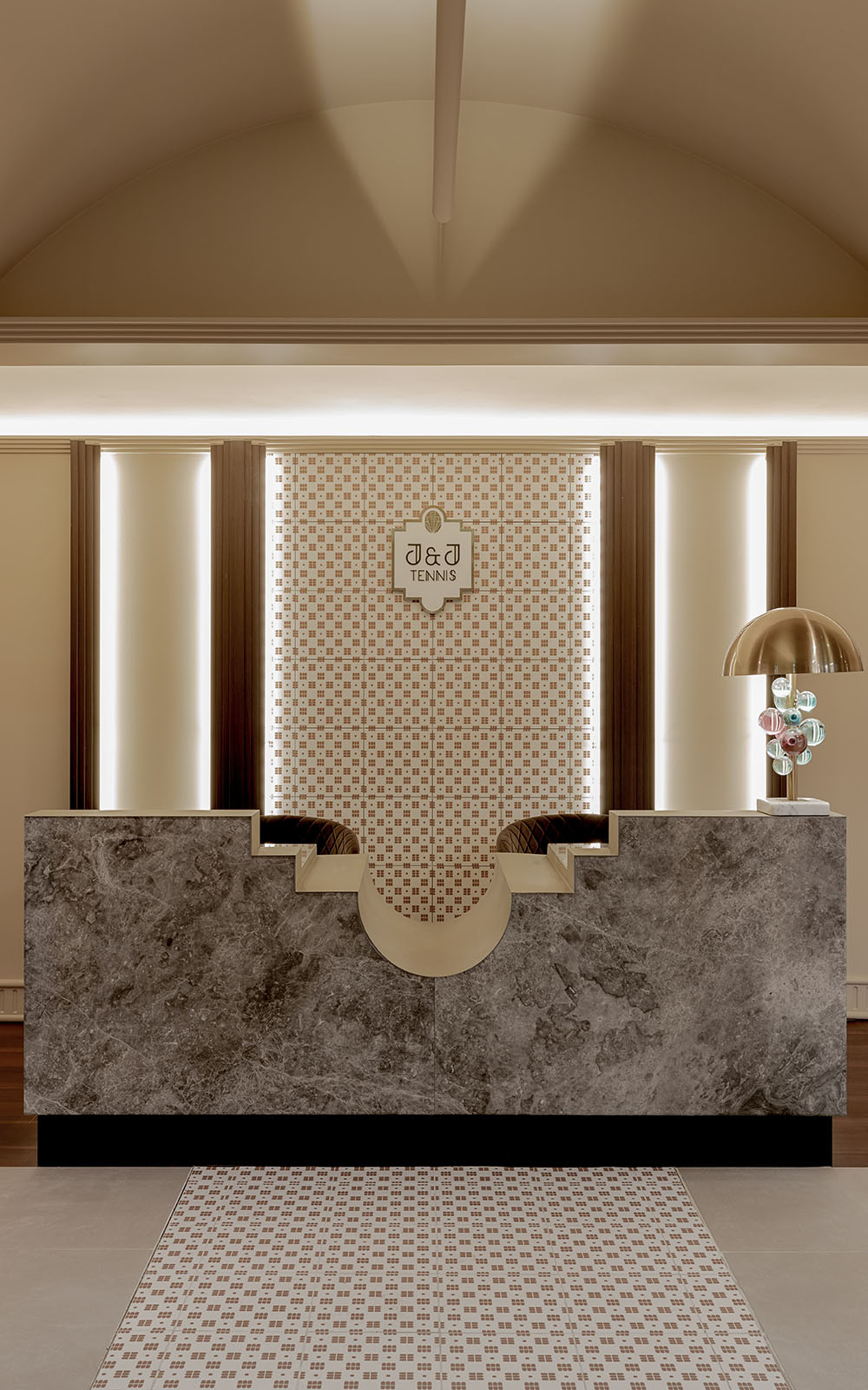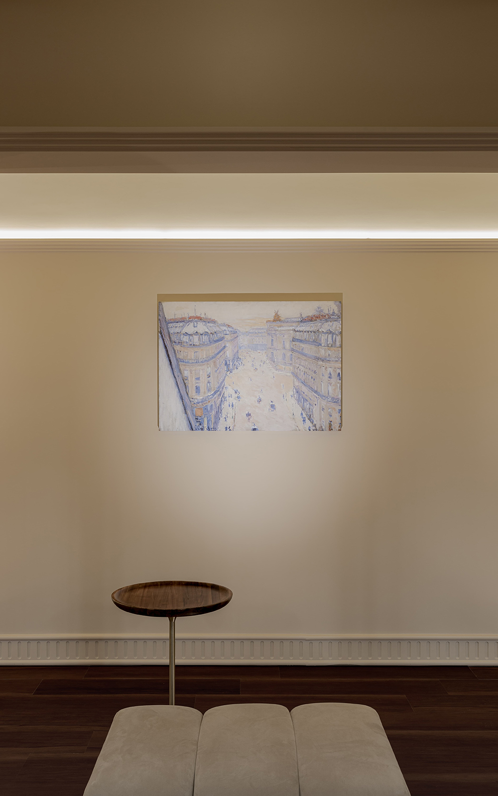 반포라는 지역적 특색을 연구하며 설계한 공간입니다. 아르데코풍의 디자인의 연출을 위해 조형의 디테일과 소재의 엔틱함, 공간감에 집중하였고 인상파 화가들의 그림을 매치함으로 고전적인 연출을 더했습니다. Project: J&J 테니스 2
