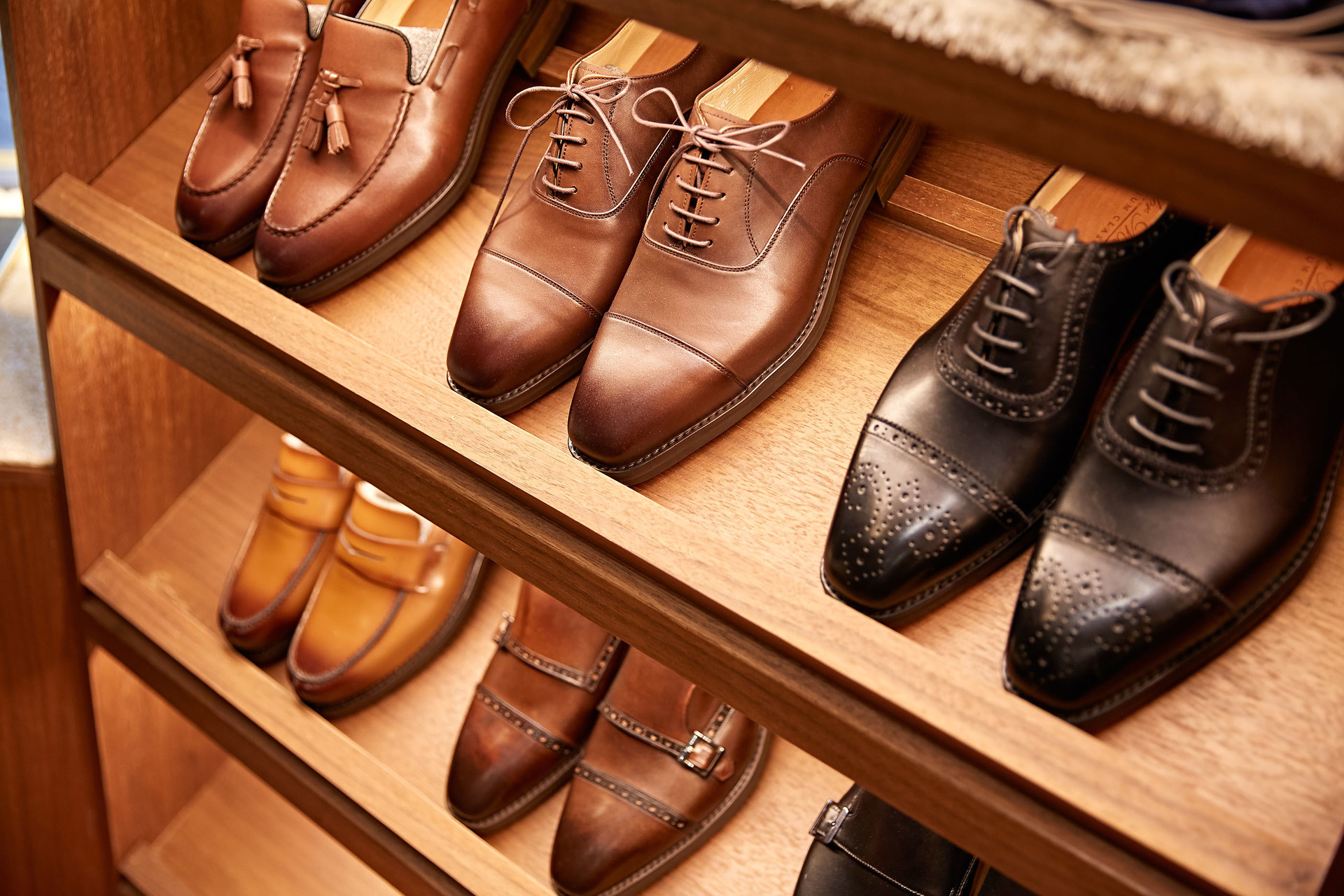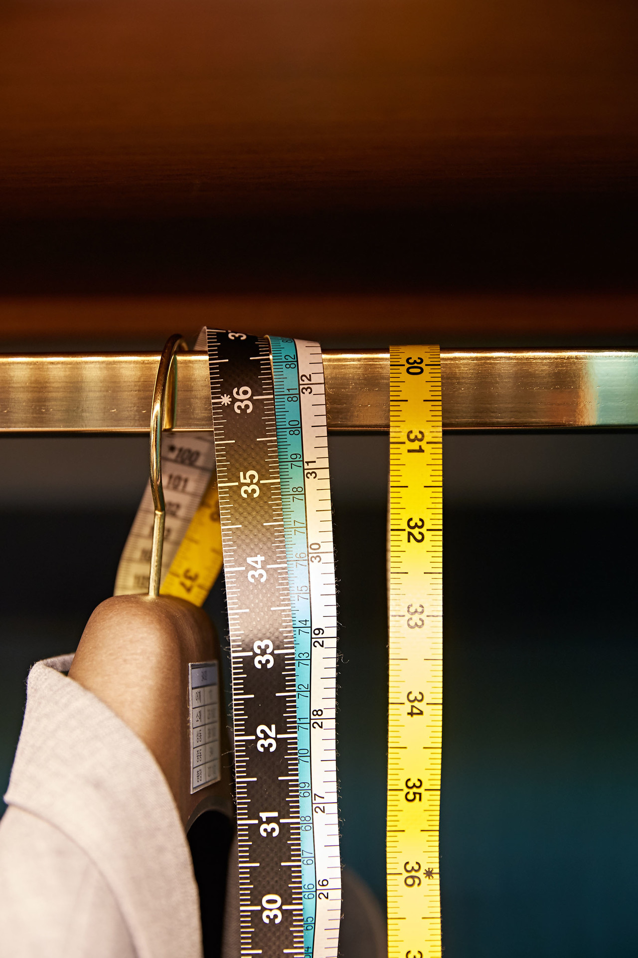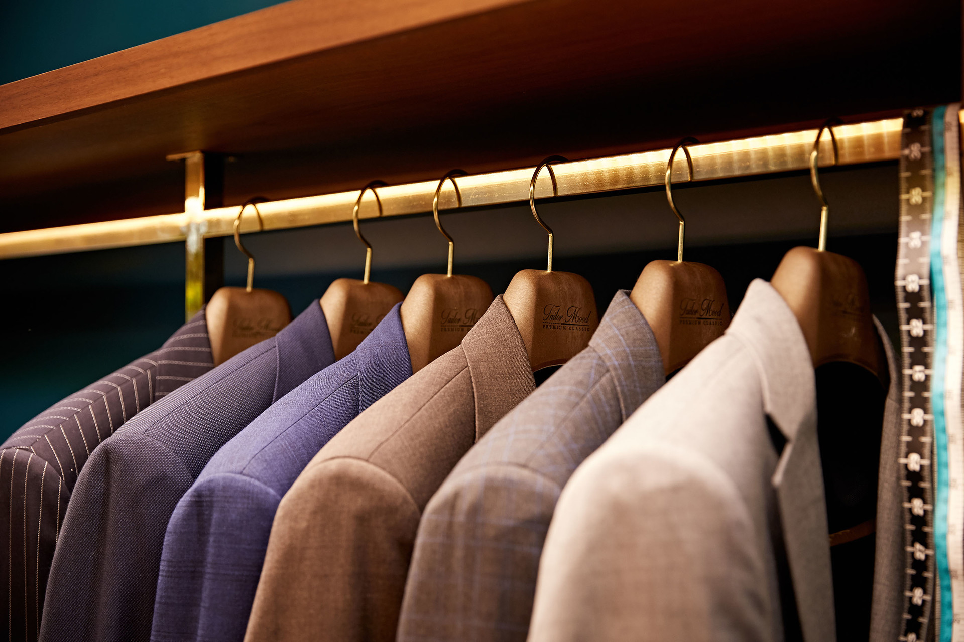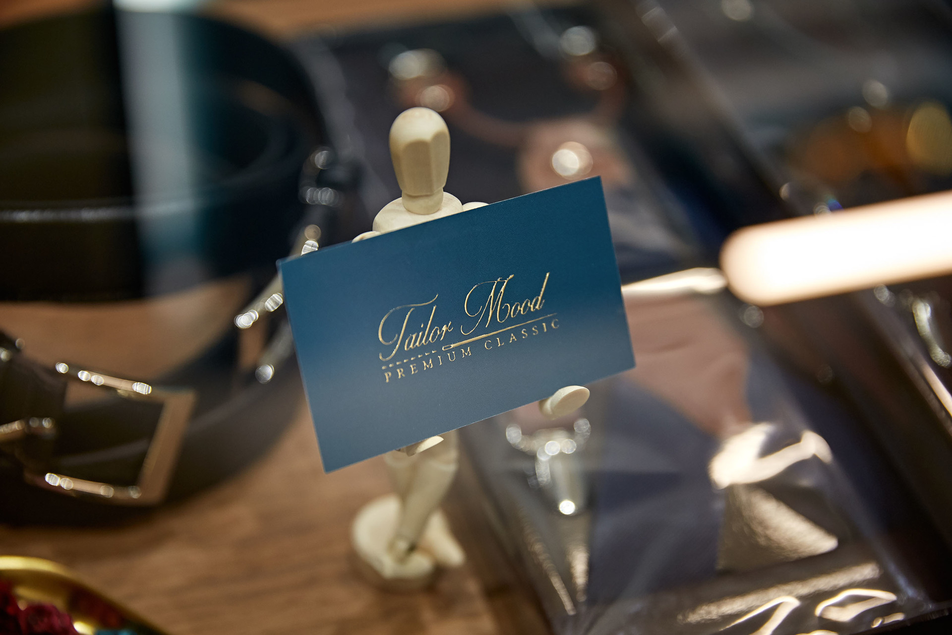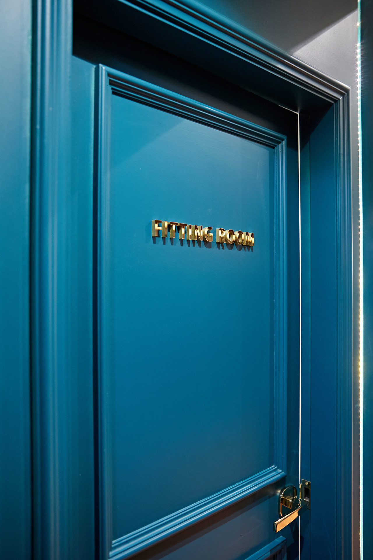 청녹색 벽체와 천장을 바탕으로, 월넛 톤 가구와 골드 포인트를 더해 클래식하고 품격 있는 테일러샵 무드를 연출했습니다.
