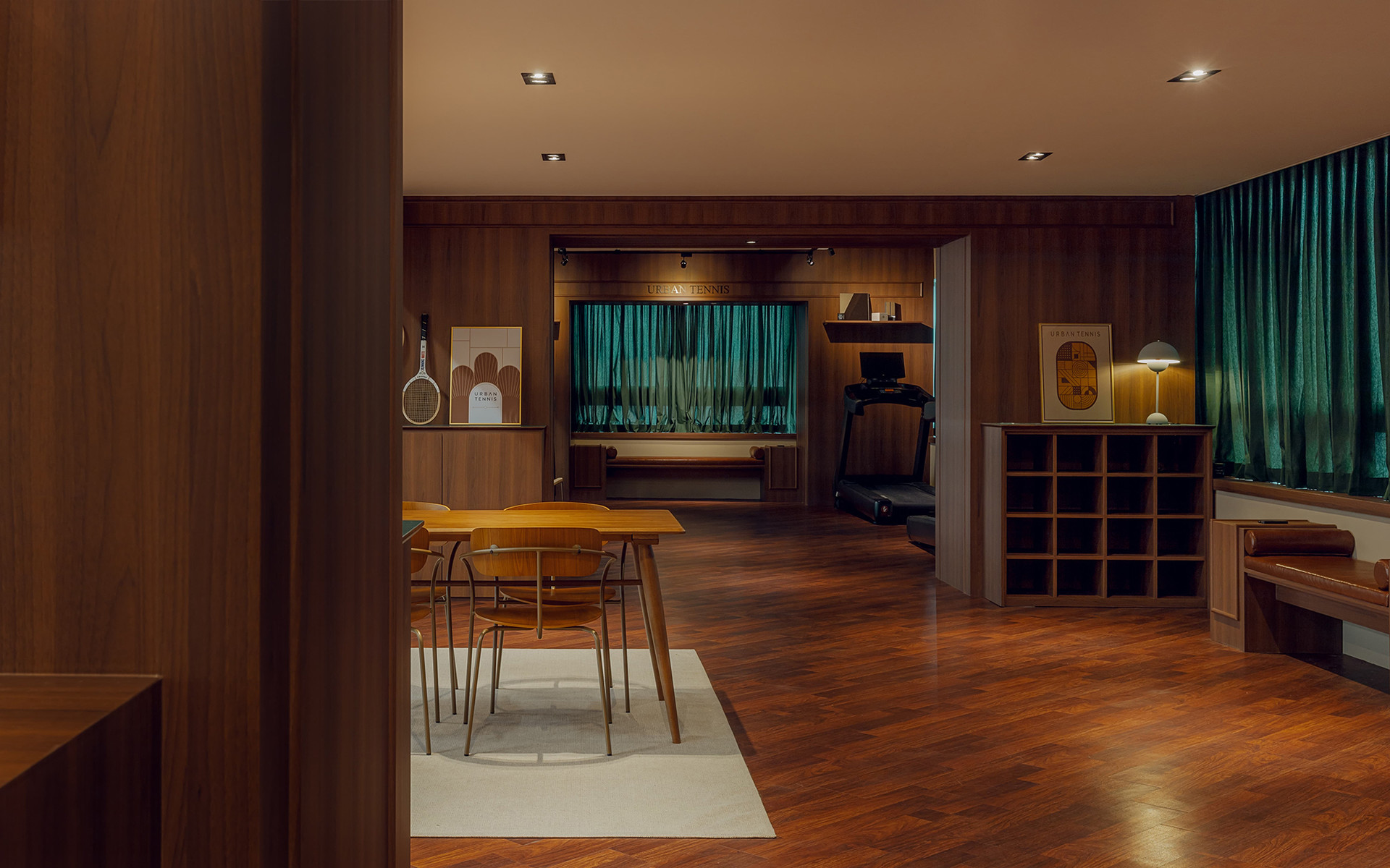 3호점인 어반테니스 문정점의 무드를 이어가기 위해 네오 클래식한 연출로 작업하였으며, 클라이언트 성향을 고려해 남성스럽지만 따뜻한 색감을 더했습니다.