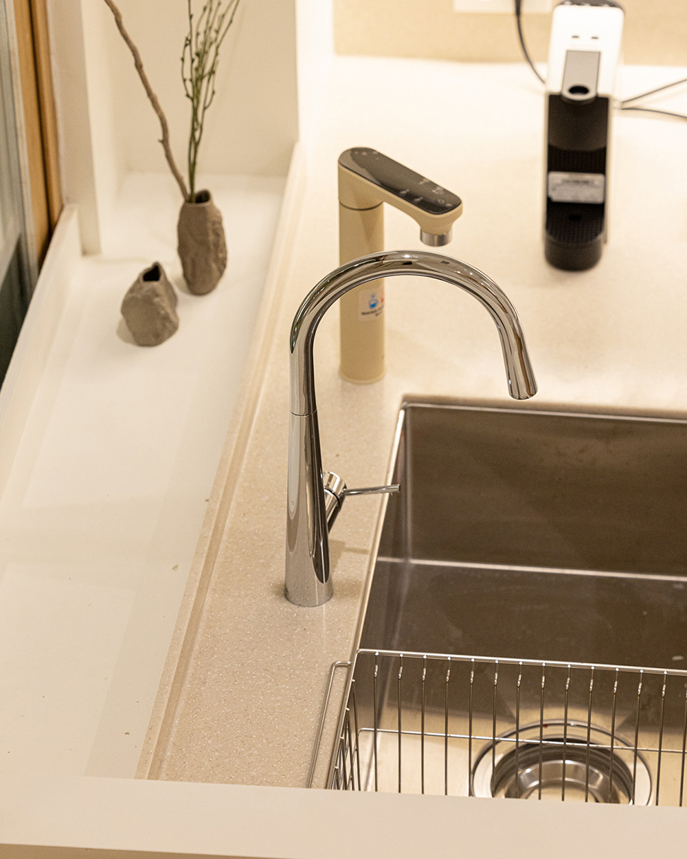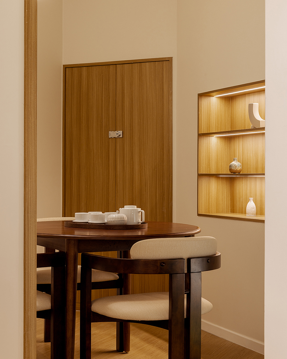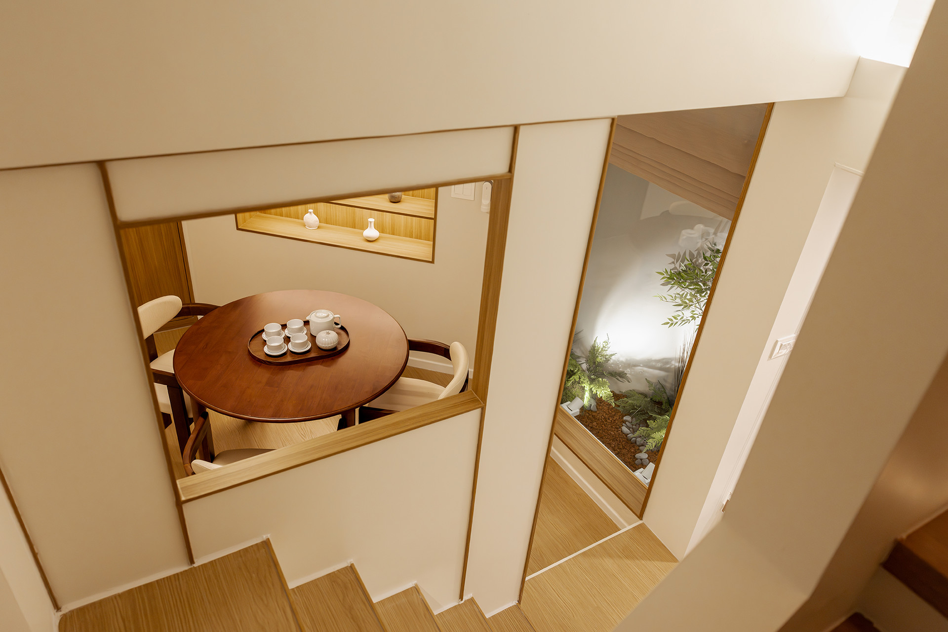 중앙 계단을 중심으로 유기적으로 연결된 이 공간은 수직적인 구조 속에서도 아늑함을 느낄 수 있도록 설계되었습니다. ‘연숨’은 ‘연속’과 ‘숨’의 결합으로, 편안한 숨결이 이어지는 공간을 의미합니다. 지상에서 지하로 연결된 층들은 흐름과 변화의 감각을 담고 있으며, 특히 외부와 연결된 지하 정원을 통해 자연과의 조화를 경험할 수 있습니다. 사람과 사람을 잇는 숨결 속에서 여유로운 휴식을 만끽하길 바라며 만들어졌습니다.