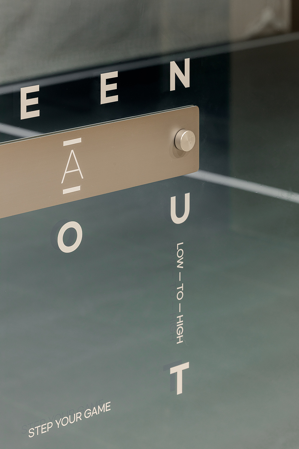아직 서울·경기 지역에 비해 테니스의 대중화가 부족한 군산에서, 실내에서 테니스를 하는 행위 자체를 쉽고 재미있게 다가가기 위해 안정적인 톤을 베이스로 위트 있는 그래픽을 담아 공간을 표현했습니다. ㄷ자 형태로 공간을 설계하고, 그 중앙에 카운터와 홀을 두어 고객을 좀 더 적극적으로 맞이할 수 있도록 설계하였습니다.